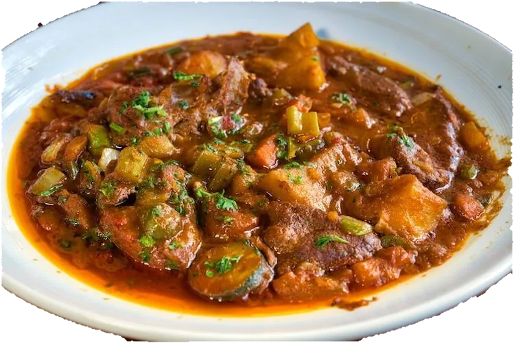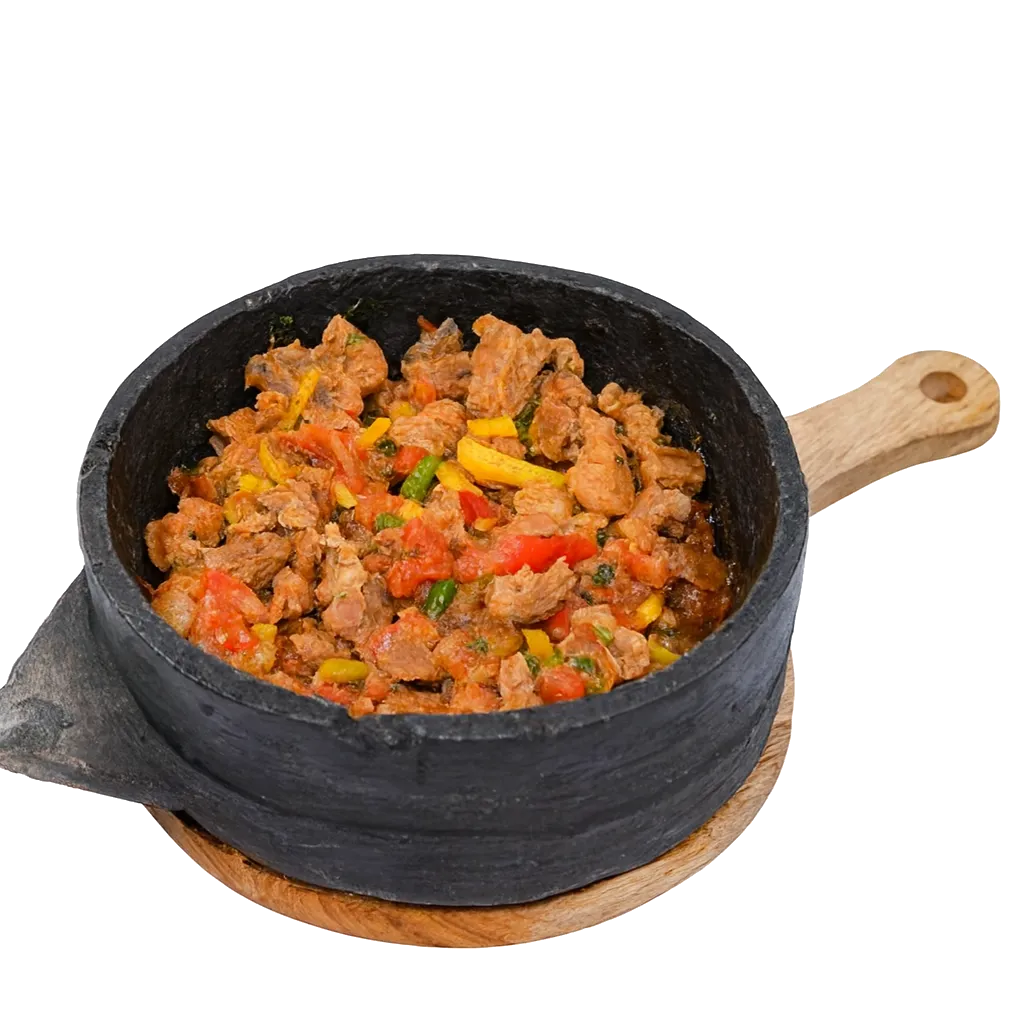 Slow-cooked meat in a rich sauce, served hot and comforting.